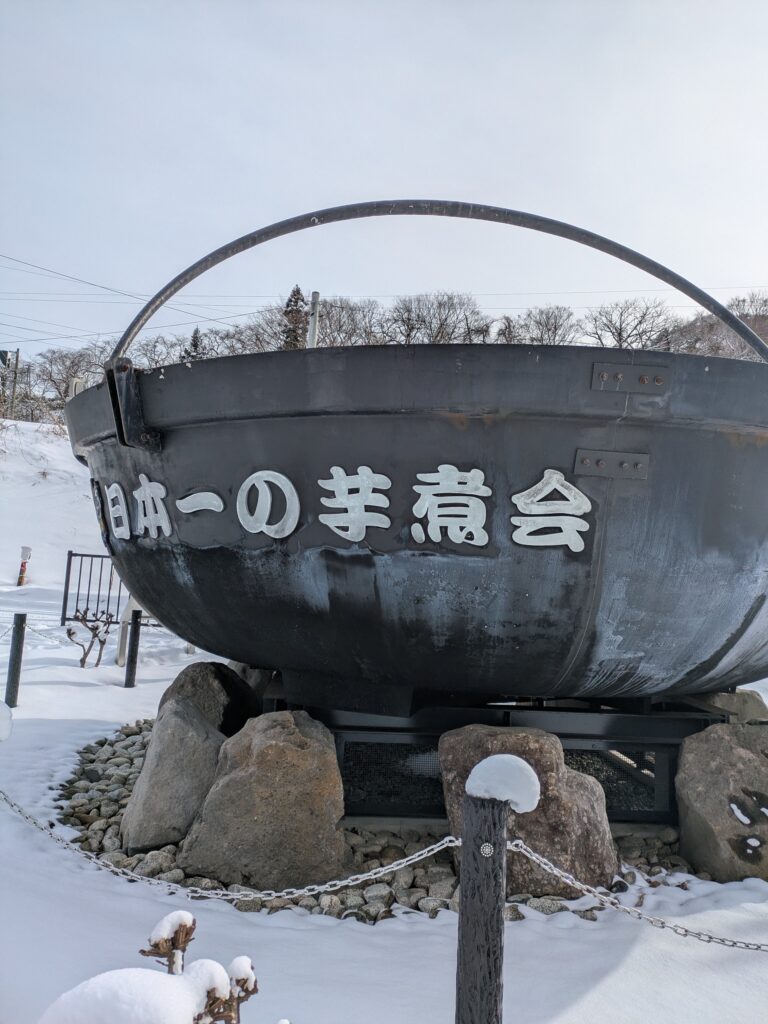 階段の総段数は1000段以上あるらしい。数えながら登る余裕もなかったので正確なところは分からないが、とにかくきつかった。山寺のどこをメインにするかは人によるが、とにかく遠くから見えていた展望台のような高台を目指した。ここには最後の難所があって、高台まで後少しのところが小さな坂のようになっていて、そこが雪のせいで完全に凍っている。傍にロープが通してあるのでそれをつかまりながら登るのだが登山用の本格的な靴でないと、足もとに引っかかる場所がなくてつるつる滑る。行きはロープを持つ手に力を込めて身体を引き上げればよいが、帰りは派手に転んだ。体幹や体重移動に慣れていないと、ロープをつかんでいるだけでは体重に任せてつるんといってしまう。足でもきちんとふんばらないといけない。転んだけど大した勾配の坂でもないし、寒さ対策で厚着をしていたからつるんと滑って軽く尻餅をついた程度で怪我はしていない。高台からの景色は、山寺周辺を見渡せて絶景なのでぜひ見てみてほしい。登山は上りより下りがきついと聞いたことがあったが、山寺参拝もそれに漏れず、1000段以上の階段を下りるのは完全に修行だった。最後のほうは膝ががくがくするほどだった。朝から山寺に来ていたので参道入口に戻ってきたところでちょうど昼時。疲労困憊なのでそのまま芋煮を食べに「いずみや」というお店を訪れた。泊まっていた宿に山寺周辺の手書きマップがあったので、前日からここに芋煮を食べに行こうと決めていた。寒かったので七味を沢山かけて食べた芋煮は疲れた身体にすっと馴染んだ。店員の方も終始笑顔で親切で、お冷の補充だとか常に気にかけてくれた。1時間ほどかけてゆっくり食事で体力を回復させてから、山寺駅方面に戻って、芭蕉記念館へ向かう。この場所も宿で貰った散策マップに書いてあったので気になっていた。山寺駅から記念館までは階段を上る道と、車道を歩いて坂道を登っていく道とがあるのだが、山寺参拝後は後者の坂道の利用をおすすめする。車道からでも記念館へ辿り着けることに気付いたのは帰り道で、行きは階段を使ったので、昼食で回復させた少しの体力ががっつりと削られた。ありがたいことに資料館の中にはソファも複数あったので、休みながら芭蕉が奥の細道で歩いた道のりや、彼の弟子たちについて見て回らせてもらった。正直後半は体力が底をついて眠気がだいぶきていた。